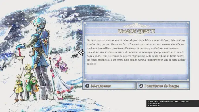 Dragon Quest I et II remake est la suite de la trilogie d'Elric. Malgré le fait qu'ils soient les 2 premiers épisodes de la licence, ces derniers sont temporellement parlant après l'épisode 3 qui a eu droit à son remake sorti l'année passée à la même période. Ces épisodes, de base, n'ont jamais quitté le Japon. Sorti respectivement entre 1986 et 1987, le jeu des papas du RPG tour par tour ont fait peau neuve ici en sortant une version HD 2D remake pour nous faire découvrir les prémices de ce que l'on connaît du JRPG maintenant.