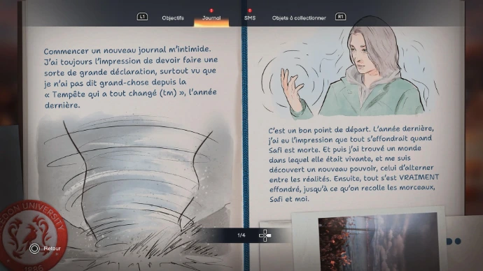 Son carnet personnel joue également un rôle important. Max y consigne ses pensées, observations et ressentis au fil de l’aventure. Cet élément, souvent discret, apporte pourtant un vrai supplément d'informations et permet de mieux suivre son l'évolution de Max mais aussi de Chloe qui rédige également un carnet.