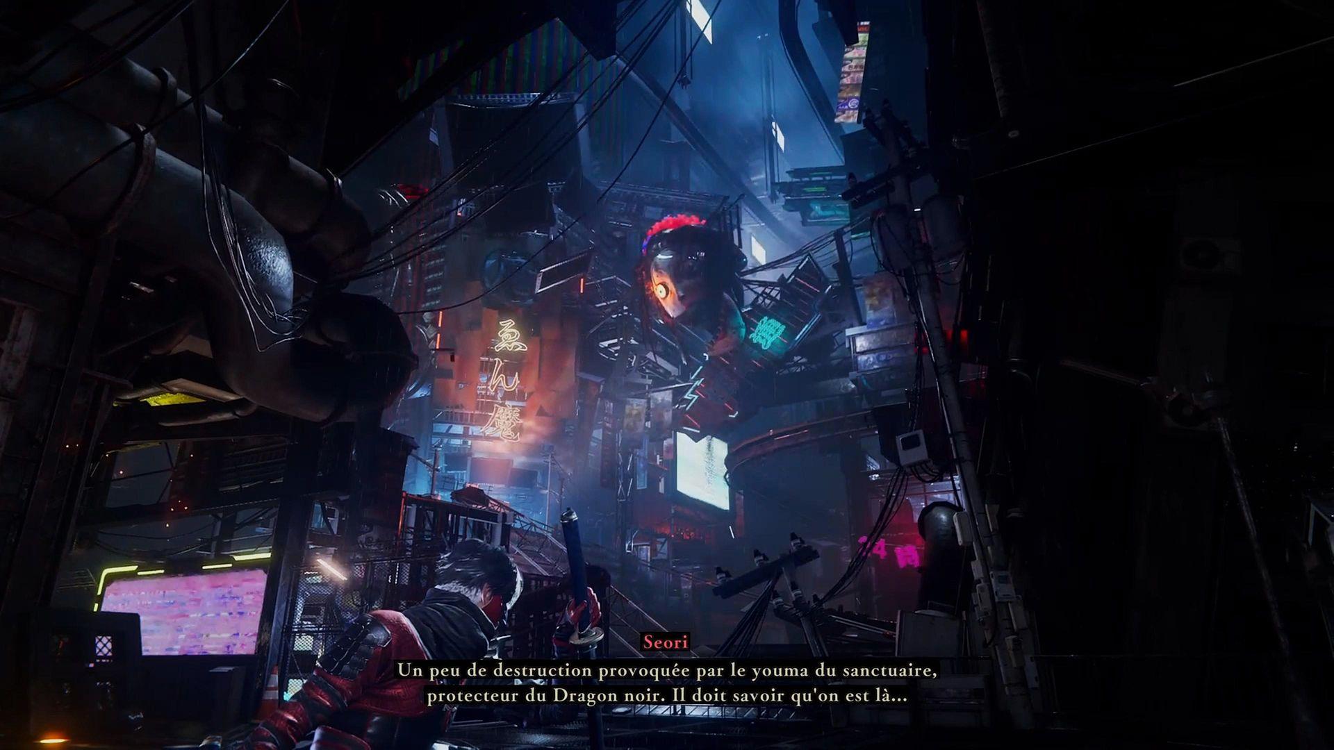 Ninja Gaiden 4 plonge le joueur dans un Neo Tokyo cyberpunk, sombre et pluvieux. Entre néons ruisselants, pluie acide et démons dans les rues, la ville respire la décadence et le chaos.