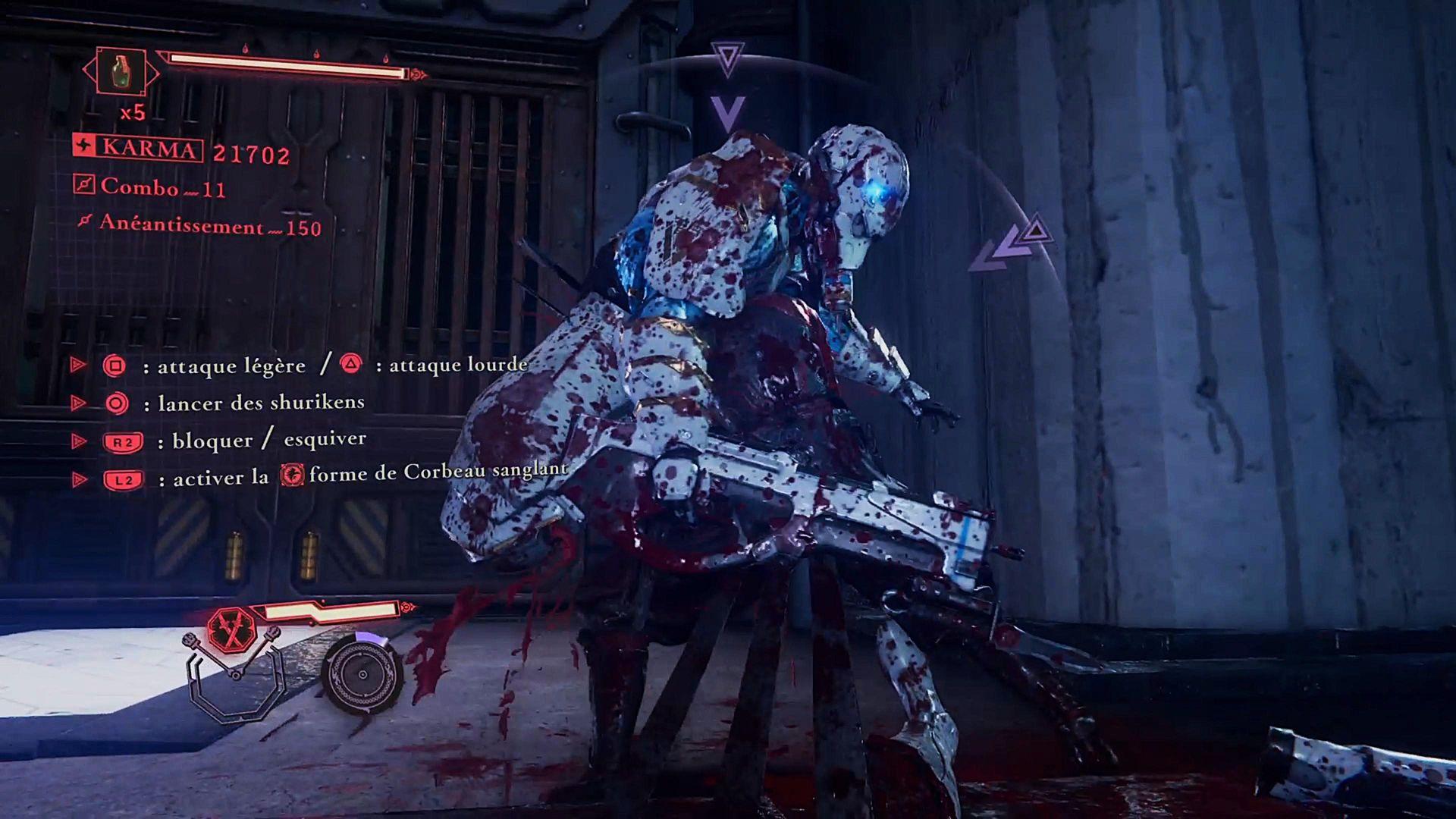 Les affrontements sont un ballet sanglant où chaque esquive, parade ou coup doit être millimétré. Le joueur alterne entre attaques légères, frappes lourdes, exécutions et transformations temporaires pour varier les styles de combat.