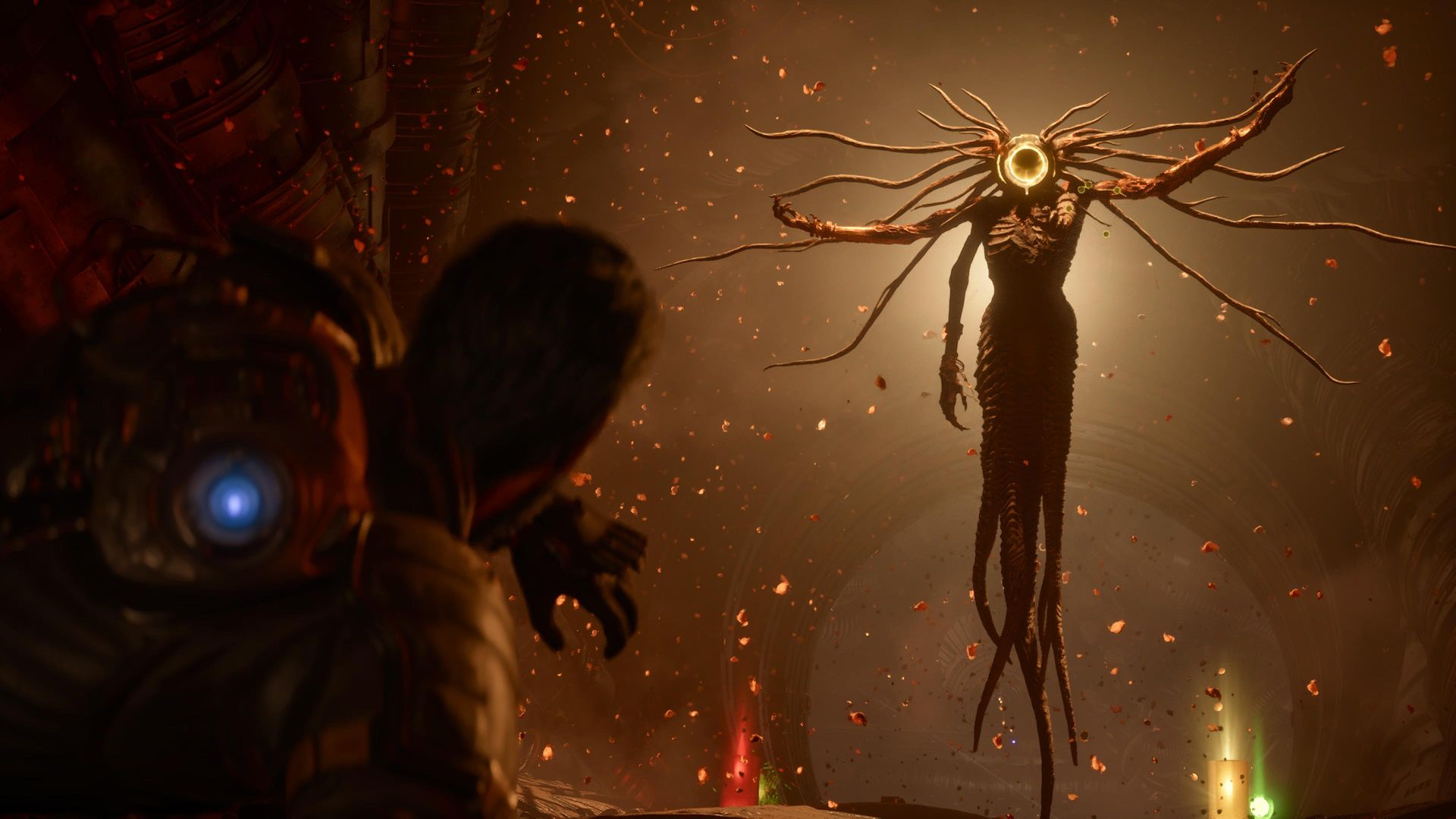 Visuellement, Saros propose des environnements particulièrement réussis, riches et immersifs, sublimés par une direction artistique mêlant science-fiction et esthétique néon. Les personnages sont légèrement en retrait en termes de finition, sans pour autant nuire à l’ensemble.