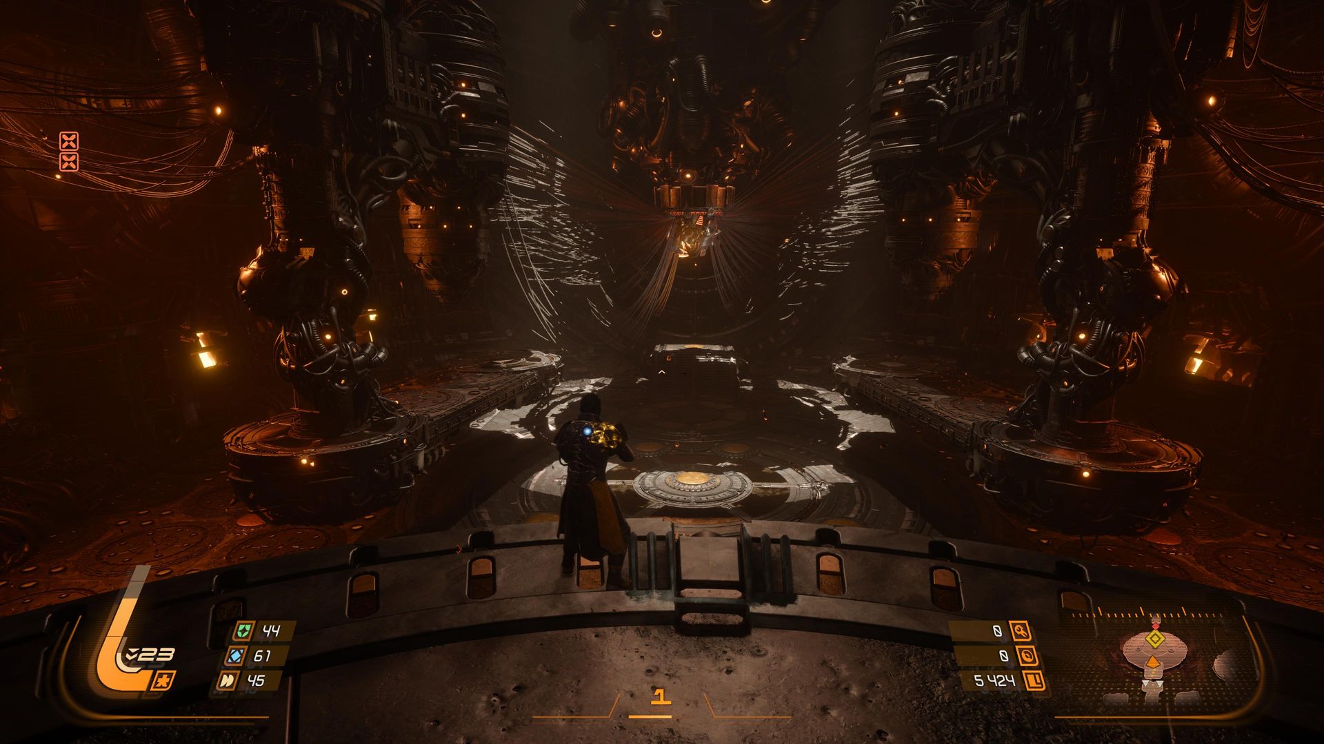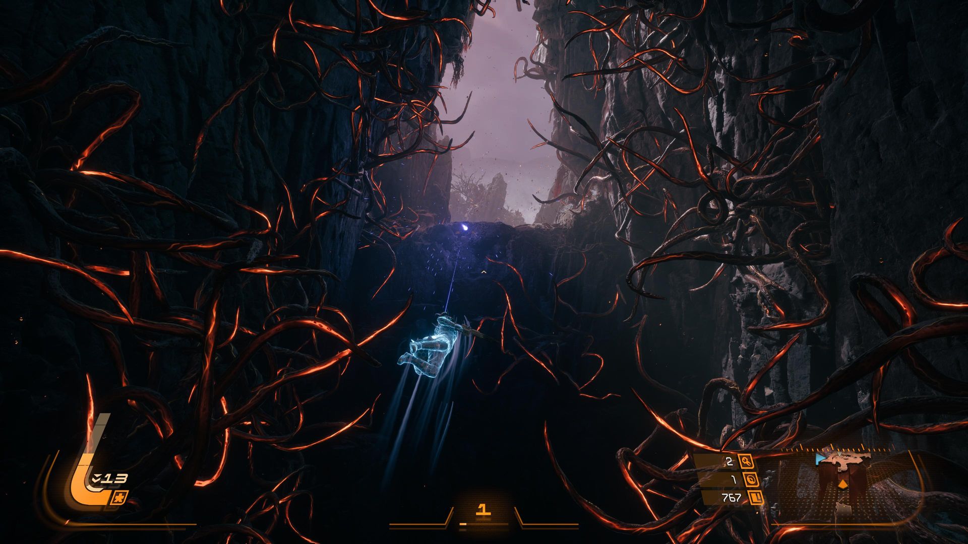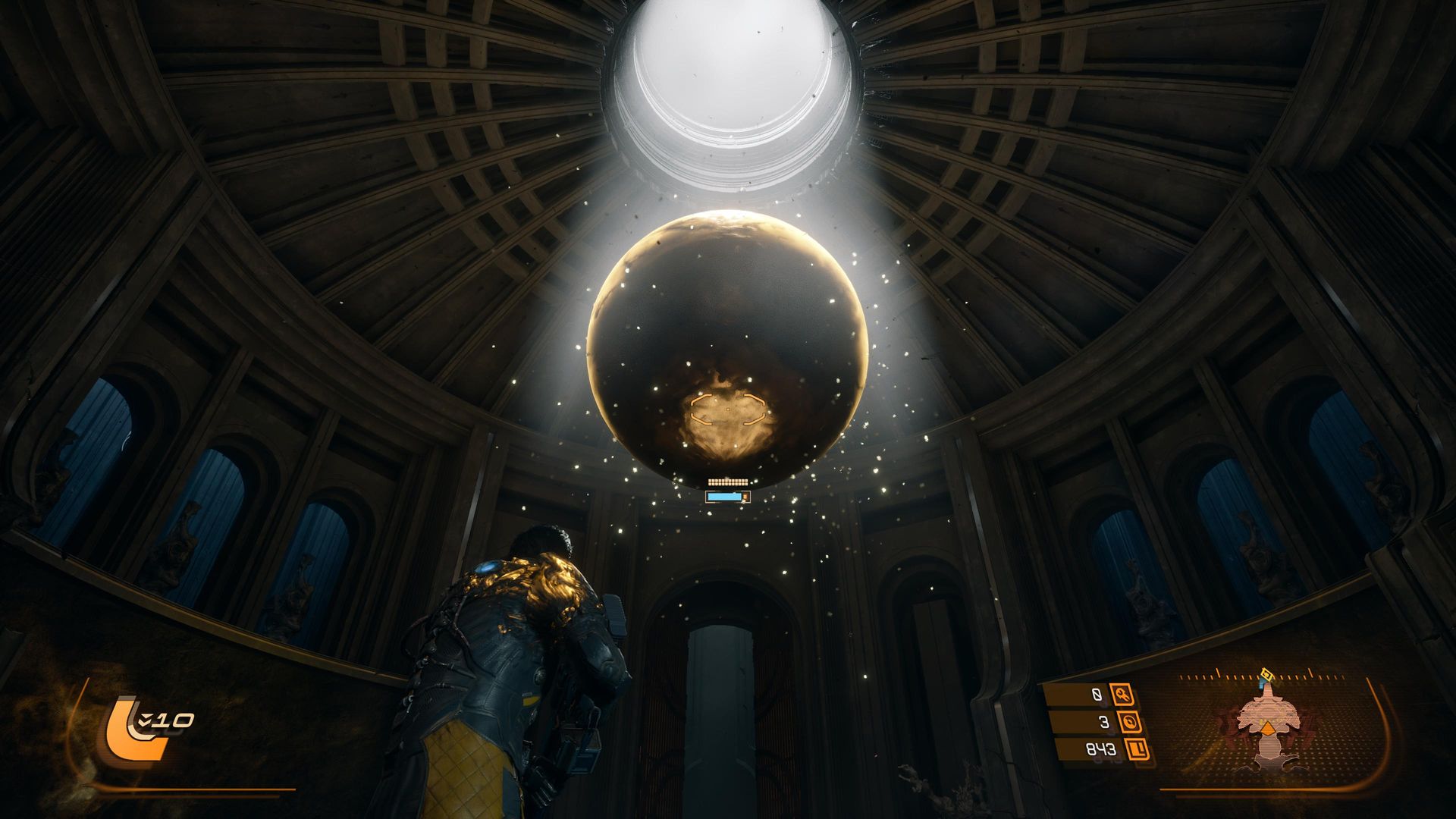 Dès les premières minutes, Saros impose un rythme soutenu et une identité forte. Le gameplay, véritable pilier de l’expérience, repose sur ce que le jeu appelle un “bullet ballet” : une danse mortelle où projectiles, esquives et contre-attaques s’enchaînent avec une fluidité impressionnante. Le joueur doit maîtriser un arsenal high-tech tout en jonglant entre dash, bouclier et parade, dans un enchaînement constant d’actions. Le bouclier ne sert pas uniquement à se protéger, il permet aussi d’absorber certains tirs pour se recharger, ajoutant une couche stratégique essentielle. Apprendre les patterns ennemis devient alors indispensable pour survivre, notamment lors des affrontements contre des boss spectaculaires.