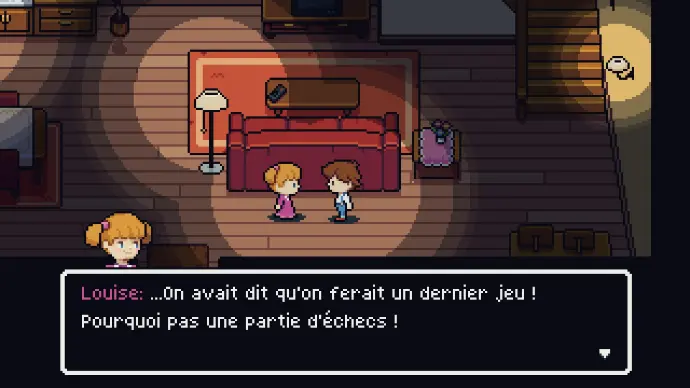 Le jeu commence avec une vue sur une maison où se trouvent Louise et Théo. La petite sœur veut jouer à une dernière partie de jeu de société avant d’aller se coucher et demande donc à Théo d'aller chercher l’échiquier dans la chambre de ce dernier.