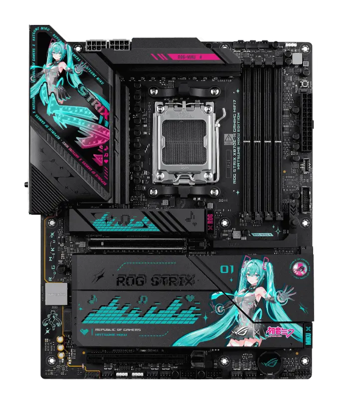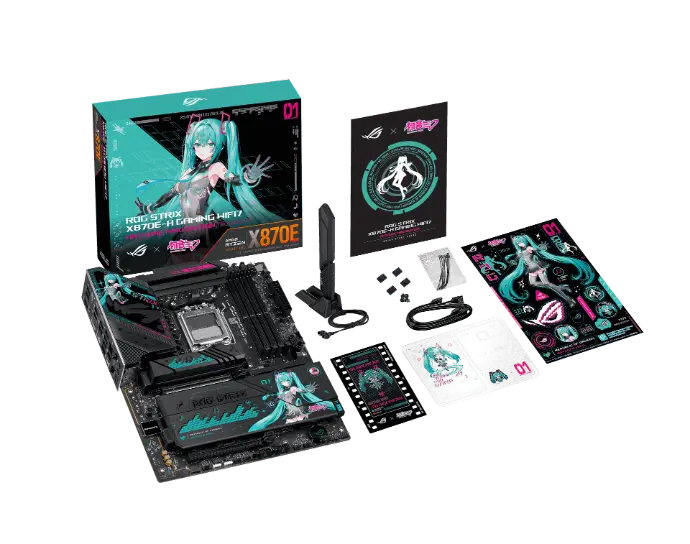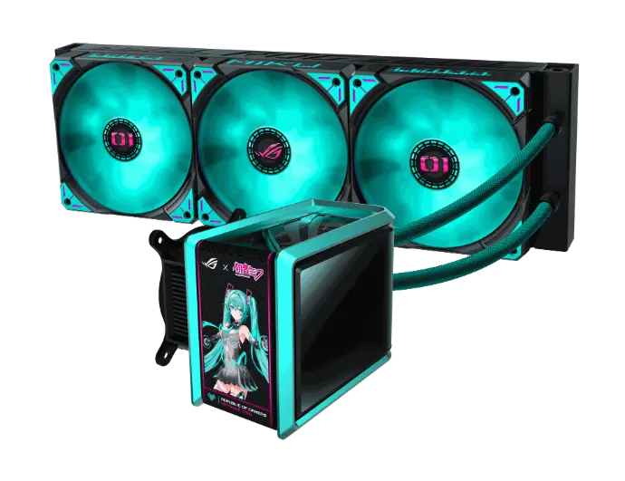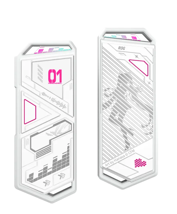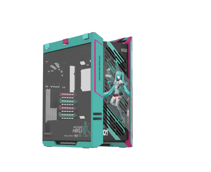 - ROG poursuit sa collaboration avec la pop star virtuelle Hatsune Miku en proposant un écosystème gaming complet inspiré de l'esthétique science-fiction de ROG et des couleurs bleu-vert et rose caractéristiques de Miku.