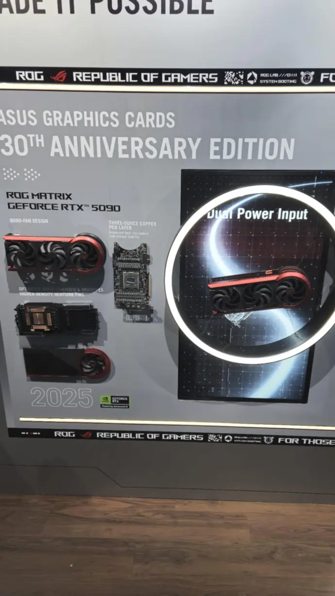 ASUS Republic of Gamers (ROG) a annoncé aujourd'hui lors de la Gamescom la sortie de la ROG Matrix GeForce RTX™ 5090 -- ASUS Graphics Cards 30th Anniversary Edition, une toute nouvelle carte graphique qui rend hommage à trois décennies d'innovation ASUS tout en ouvrant de nouveaux horizons.